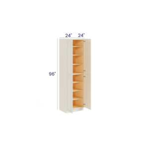 Charleston White – Utility Pantry – 24″W X 24″D X 96″H. Two Adjustable Top Shelves, Three Bottom Shelves. Note: Roll Out Shelf Kits Available.