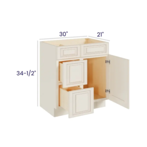 Charleston White – Vanity Sink Base Cabinet – 30″W X 21″D X 34-1/2″H With 2 Door And 2 Dummy Drawer