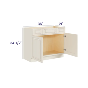Charleston White – Vanity Sink Base Cabinet – 36″W X 21″D X 34-1/2″H With 2 Door And 2 Dummy Drawer