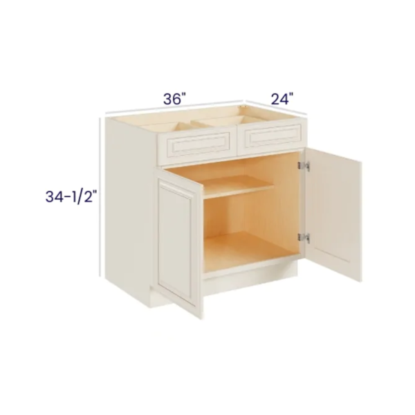 Charleston White – Base Cabinet Double Door – 36″W X 24″D X 34-1/2″H With 2 Door, 2 Drawer And 1 Shelf