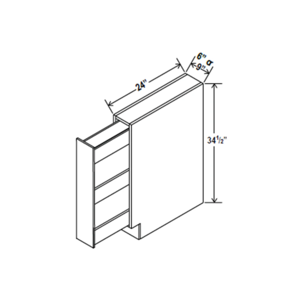 Charleston White – Spice Pull Base Cabinet – 6″W X 34-1/2″H X 24″D