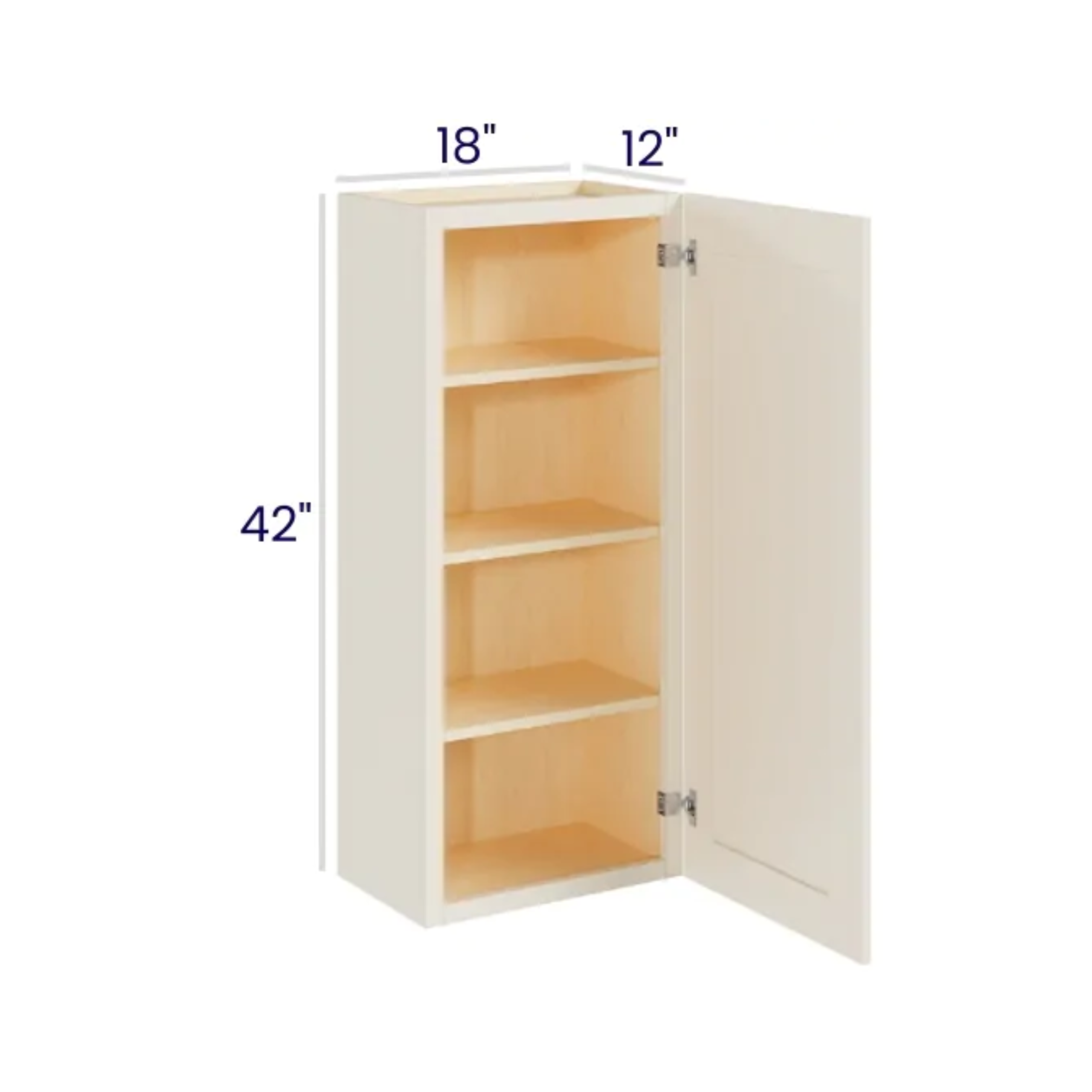 Charleston White – Wall Cabinet Single Door – 18″W X 42″H X 12″D With 1 Door And 3 Shelf