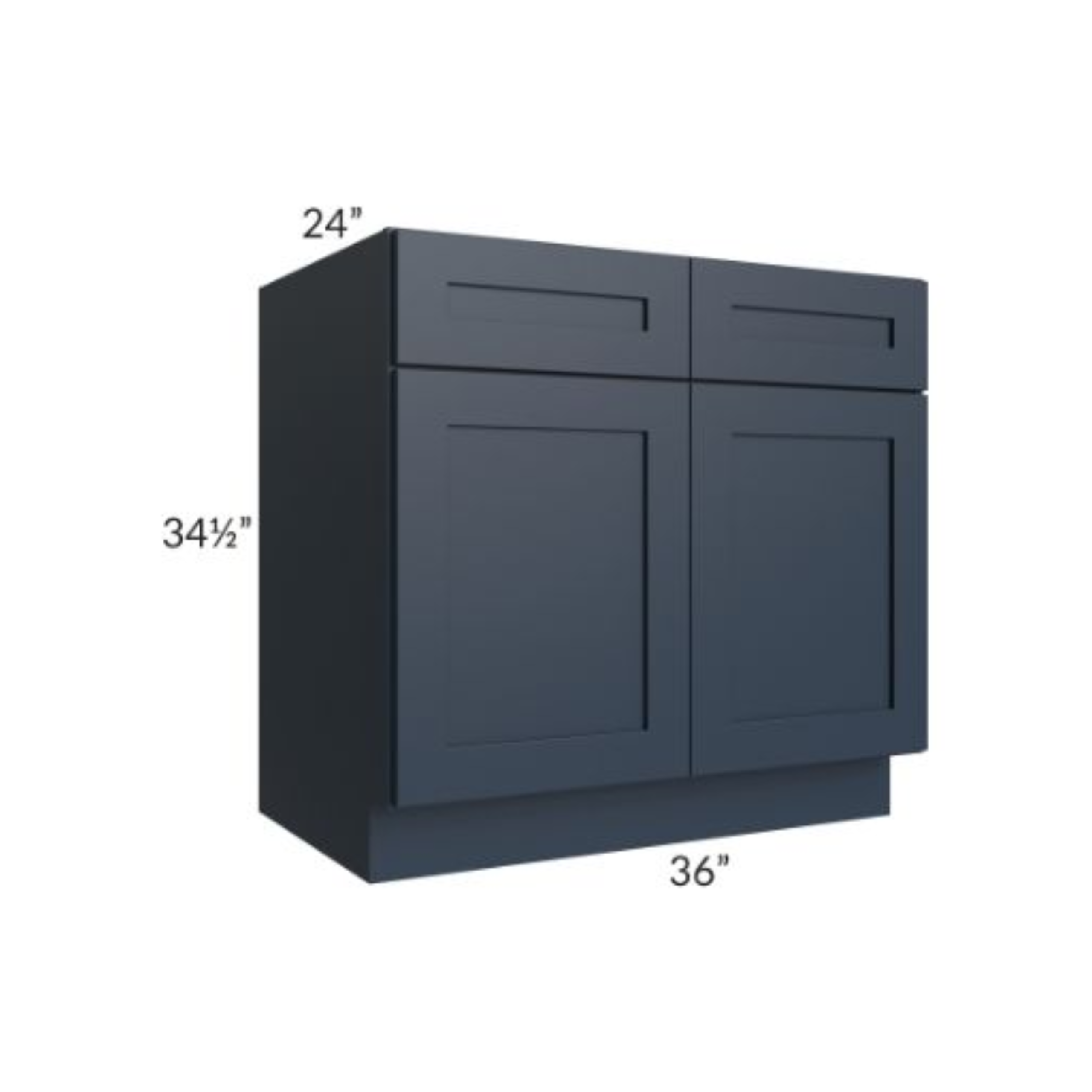 NB-B36 Navy Blue Shaker – Base Cabinet Double Door – 36″W X 24″D X 34-1/2″H With 2 Door, 2 Drawer And 1 Shelf