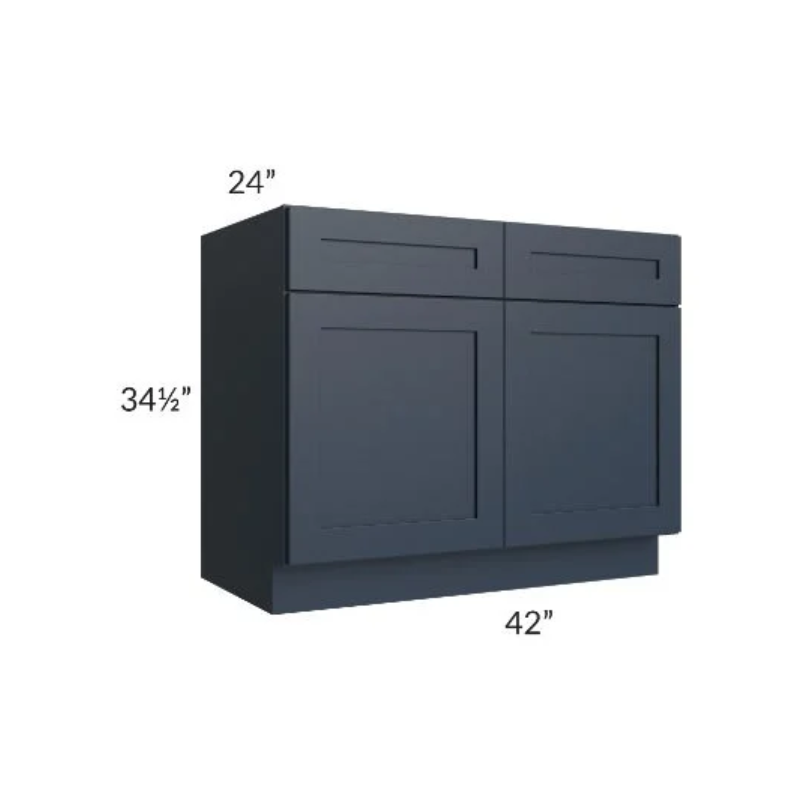 NB-B42 Navy Blue Shaker – Base Cabinet Double Door – 42″W X 24″D X 34-1/2″H With 2 Door, 2 Drawer And 1 Shelf
