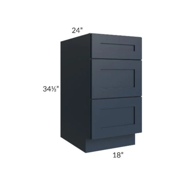 Navy Blue Shaker – Drawer Base Cabinet – 18″W X 24″D X 34-1/2″H With 3 Drawer