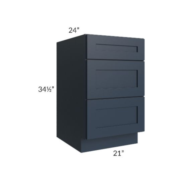 Navy Blue Shaker – Drawer Base Cabinet – 21″W X 24″D X 34-1/2″H With 3 Drawer