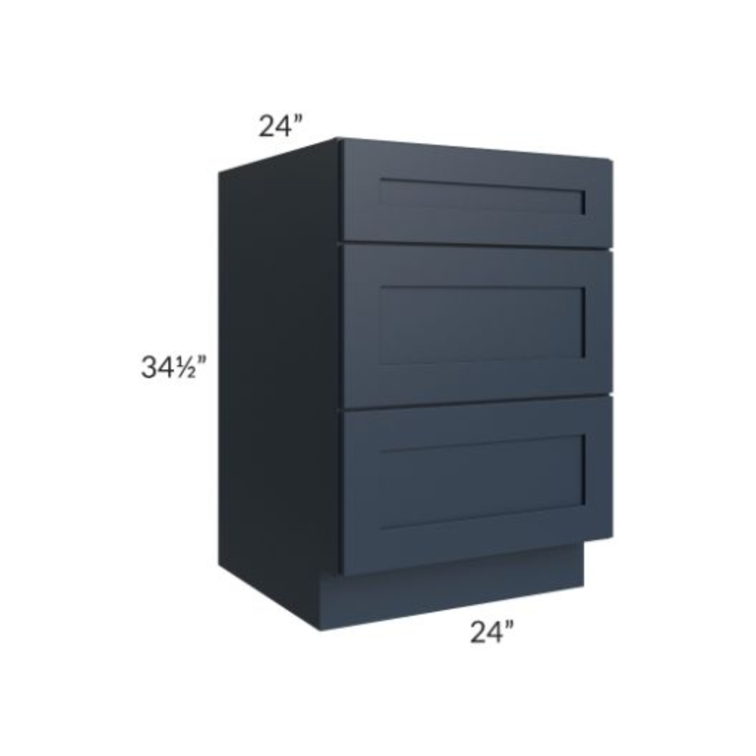 Navy Blue Shaker – Drawer Base Cabinet – 24″W X 24″D X 34-1/2″H With 3 Drawer