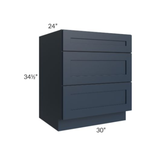 Navy Blue Shaker – Drawer Base Cabinet – 30″W X 24″D X 34-1/2″H With 3 Drawer