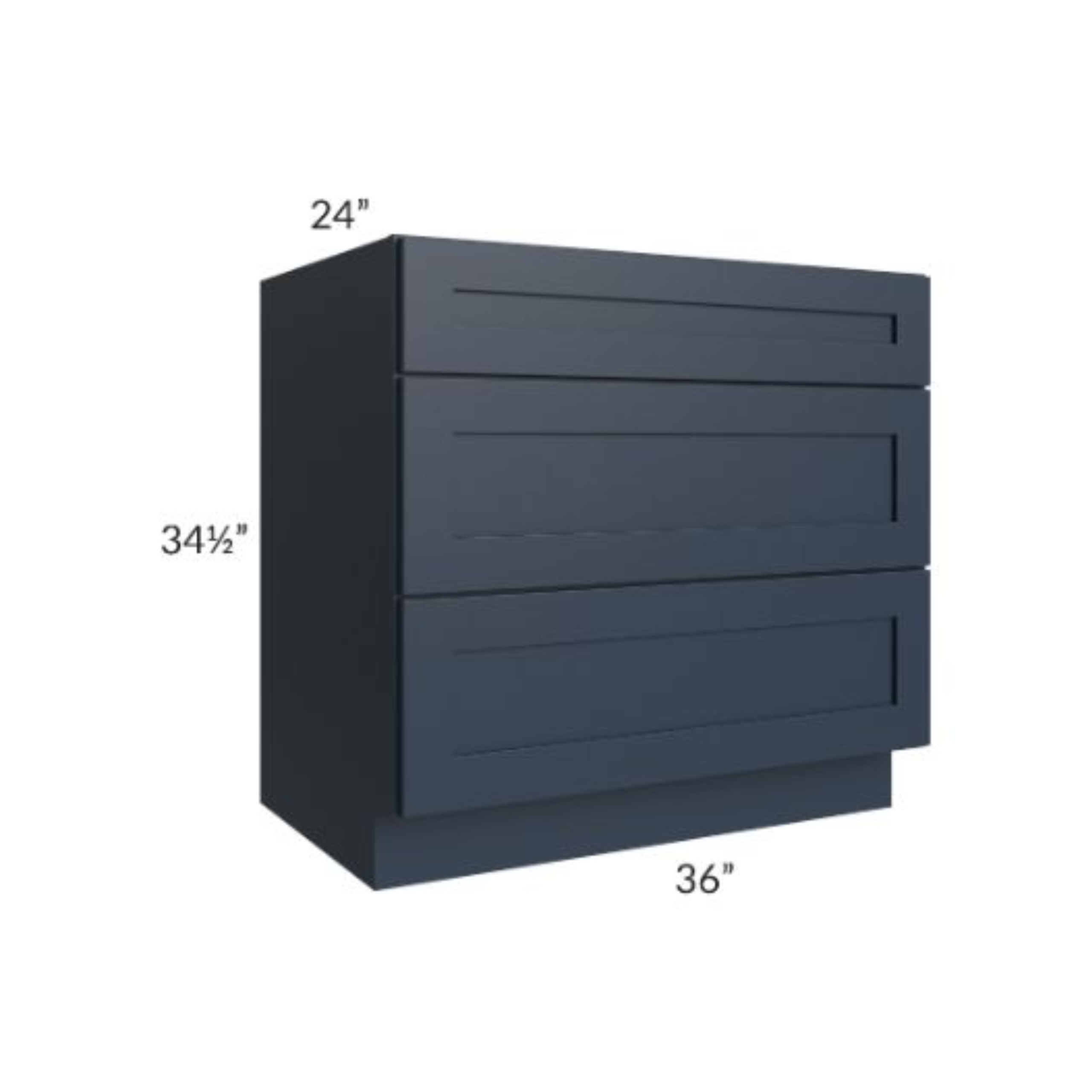 Navy Blue Shaker – Drawer Base Cabinet – 36″W X 24″D X 34-1/2″H With 3 Drawer