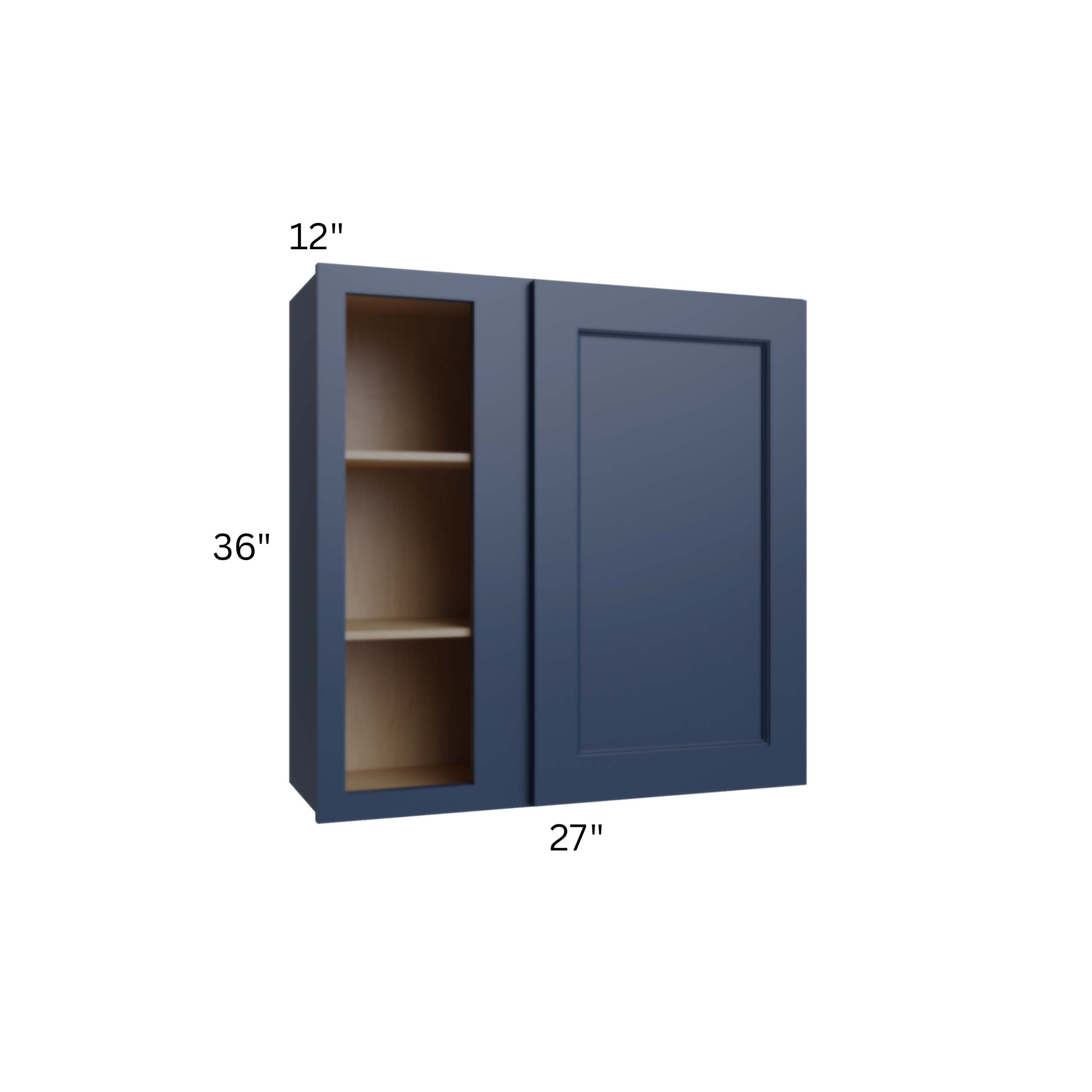 Be the first to review “Navy Blue Shaker – Wall Blind Corner Cabinet – 27″W X 36″H X 12″D With 1 Door And 2 Shelf”