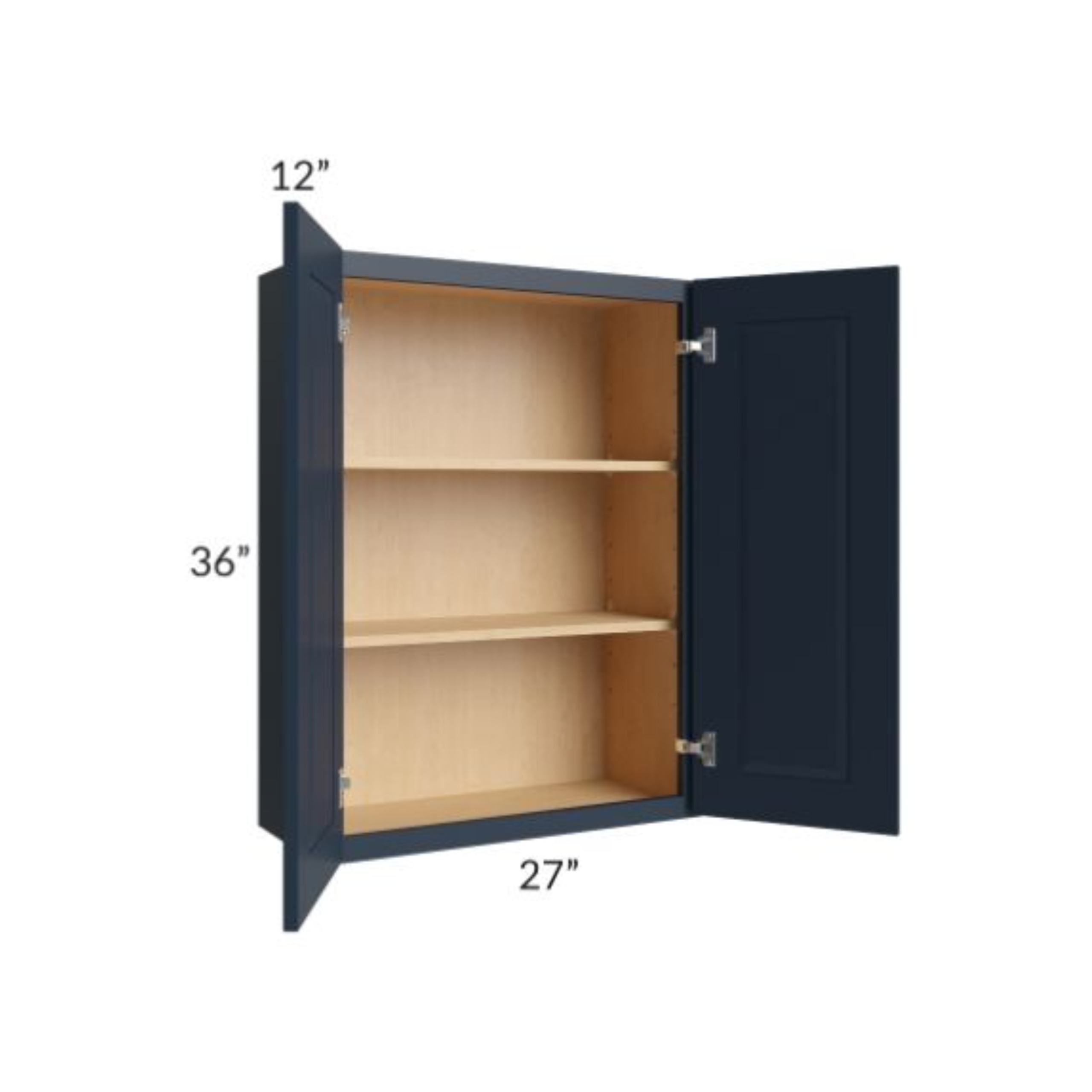 Navy Blue Shaker – Wall Cabinet Double Door – 27″W X 36″H X 12″D With 2 Door And 2 Shelf