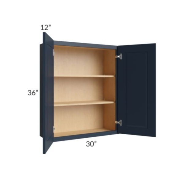 Navy Blue Shaker – Wall Cabinet Double Door – 30″W X 36″H X 12″D With 2 Door And 2 Shelf