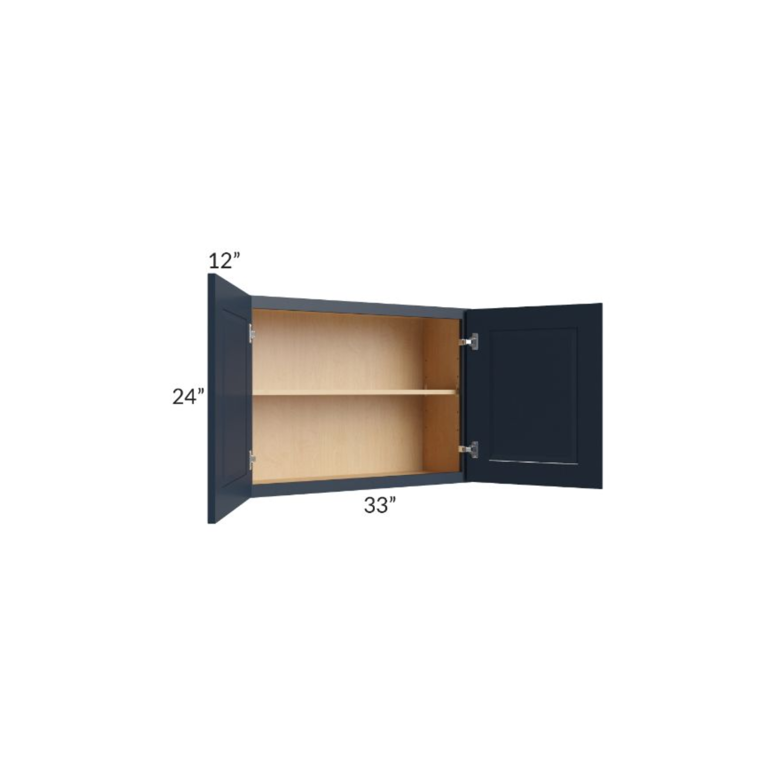 Navy Blue Shaker – Wall Cabinet Double Door – 33″W X 24″H X 12″D With 2 Door