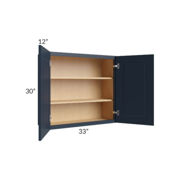 Navy Blue Shaker – Wall Cabinet Double Door – 33″W X 30″H X 12″D With 2 Door And 2 Shelf