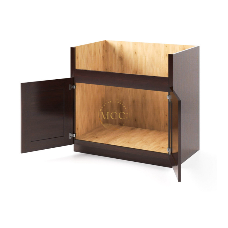 Modern Cabinets & Co Shaker Espresso Farmhouse Sink Base is made with care and attention to details. This base cabinet is designed to hold a farmhouse sink and features a rich espresso finish that adds warmth and style to your kitchen. Its built to match other Shaker Espresso cabinets and create a cohesive look in your space.