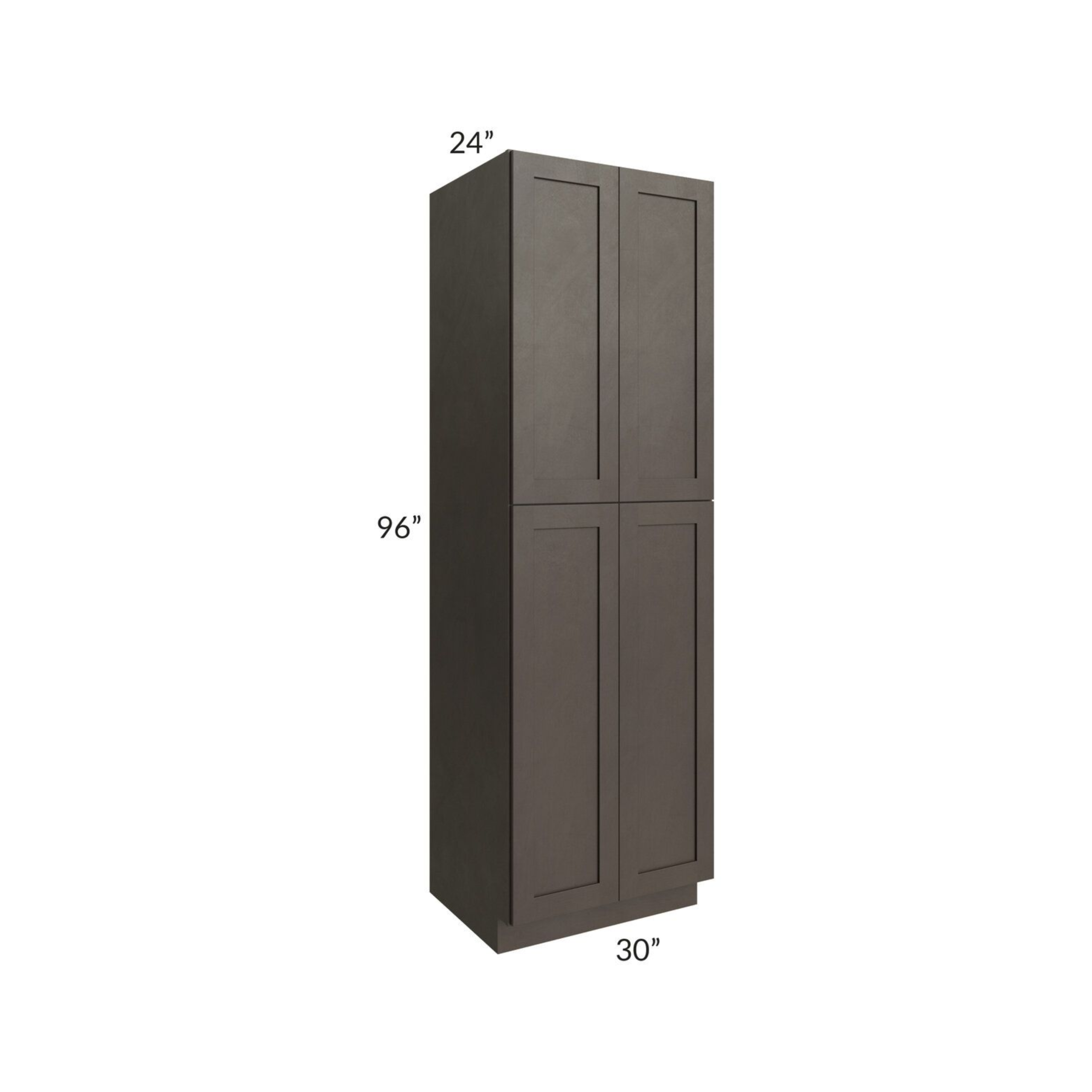 Shaker Espresso – Utility Pantry – 30″W X 24″D X 96″H. Two Adjustable Top Shelves, Three Bottom Shelves. Note: Roll Out Shelf Kits Available