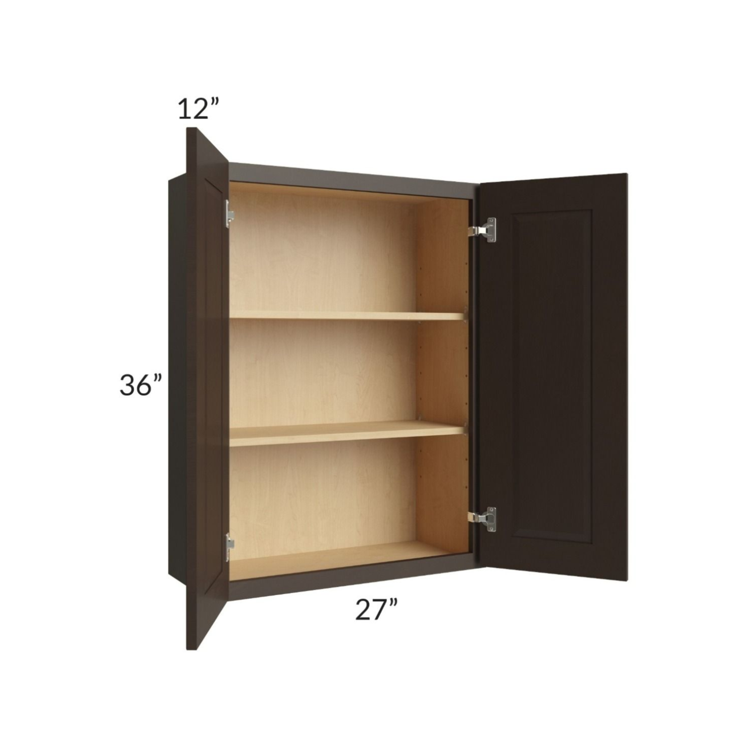 Shaker Espresso – Wall Cabinet Double Door – 27″W X 36″H X 12″D With 2 Door And 2 Shelf