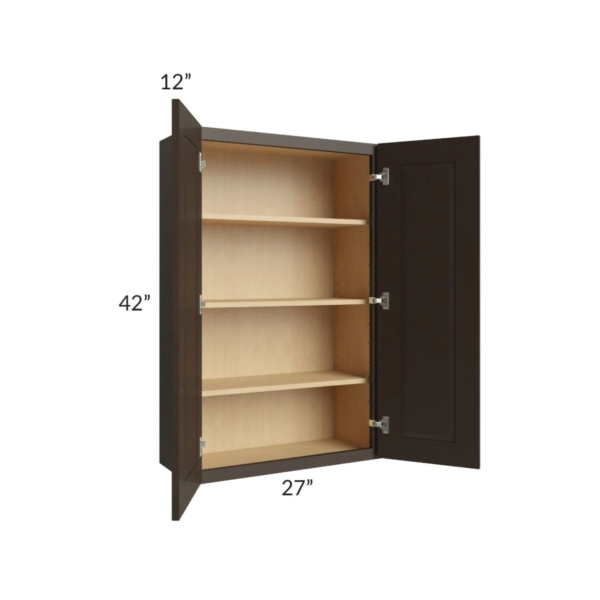 Shaker Espresso – Wall Cabinet Double Door – 27″W X 42″H X 12″D With 2 Door And 3 Shelf