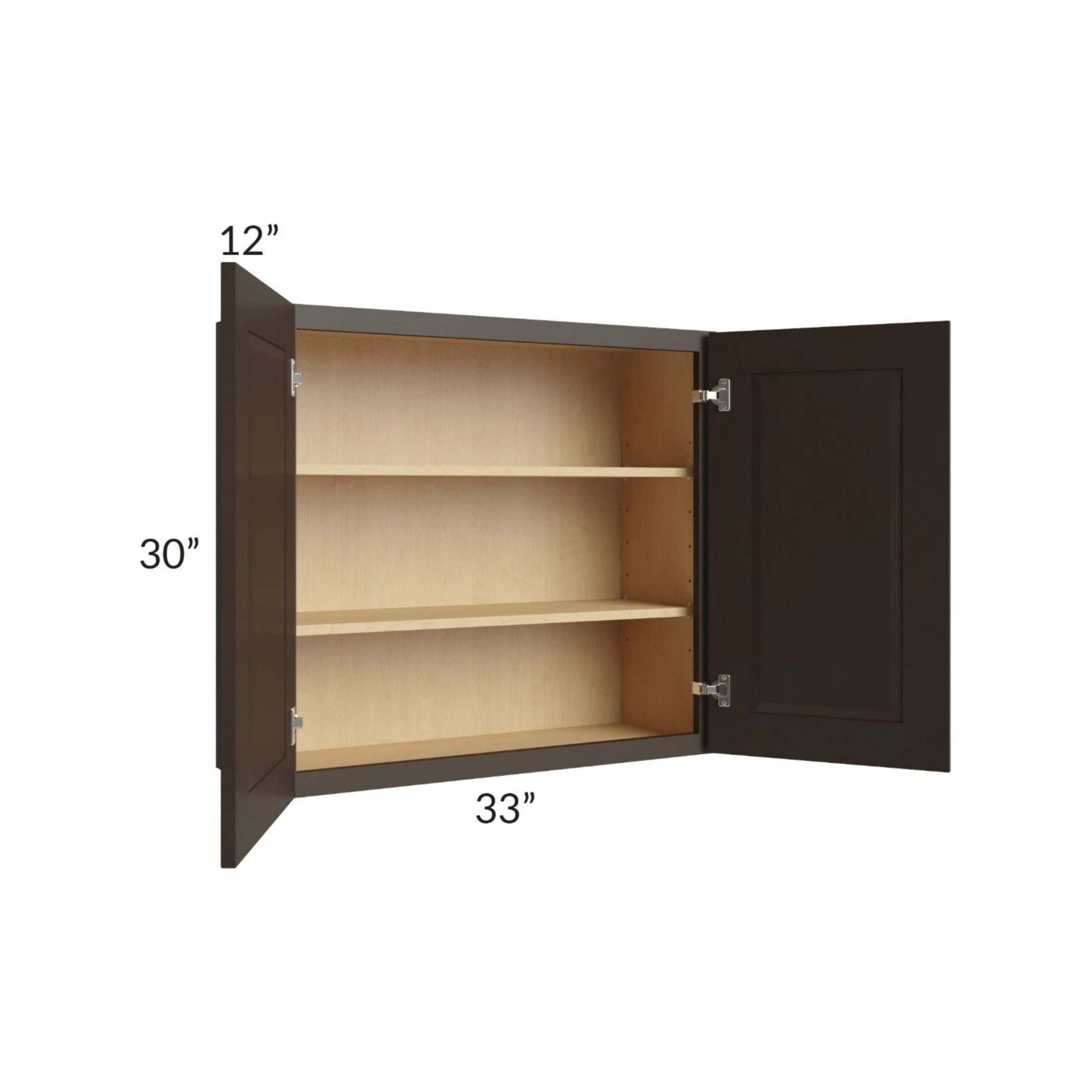 Shaker Espresso – Wall Cabinet Double Door – 33″W X 30″H X 12″D With 2 Door And 2 Shelf
