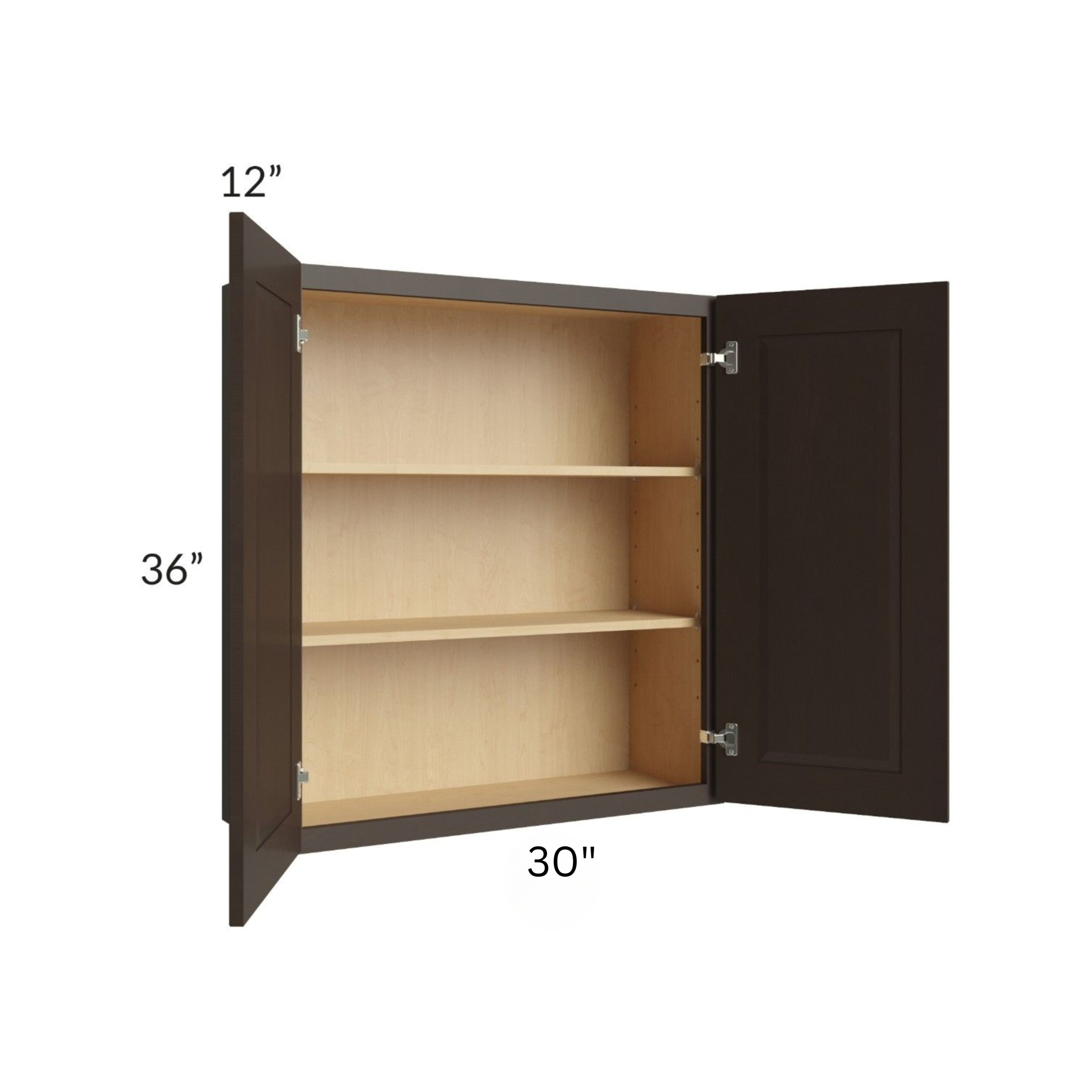 Shaker Espresso – Wall Cabinet Double Door – 36″W X 30″H X 12″D With 2 Door And 2 Shelf