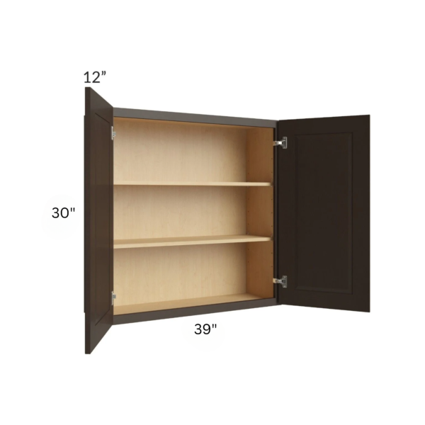 Shaker Espresso – Wall Cabinet Double Door – 39″W X 30″H X 12″D With 2 Door And 2 Shelf