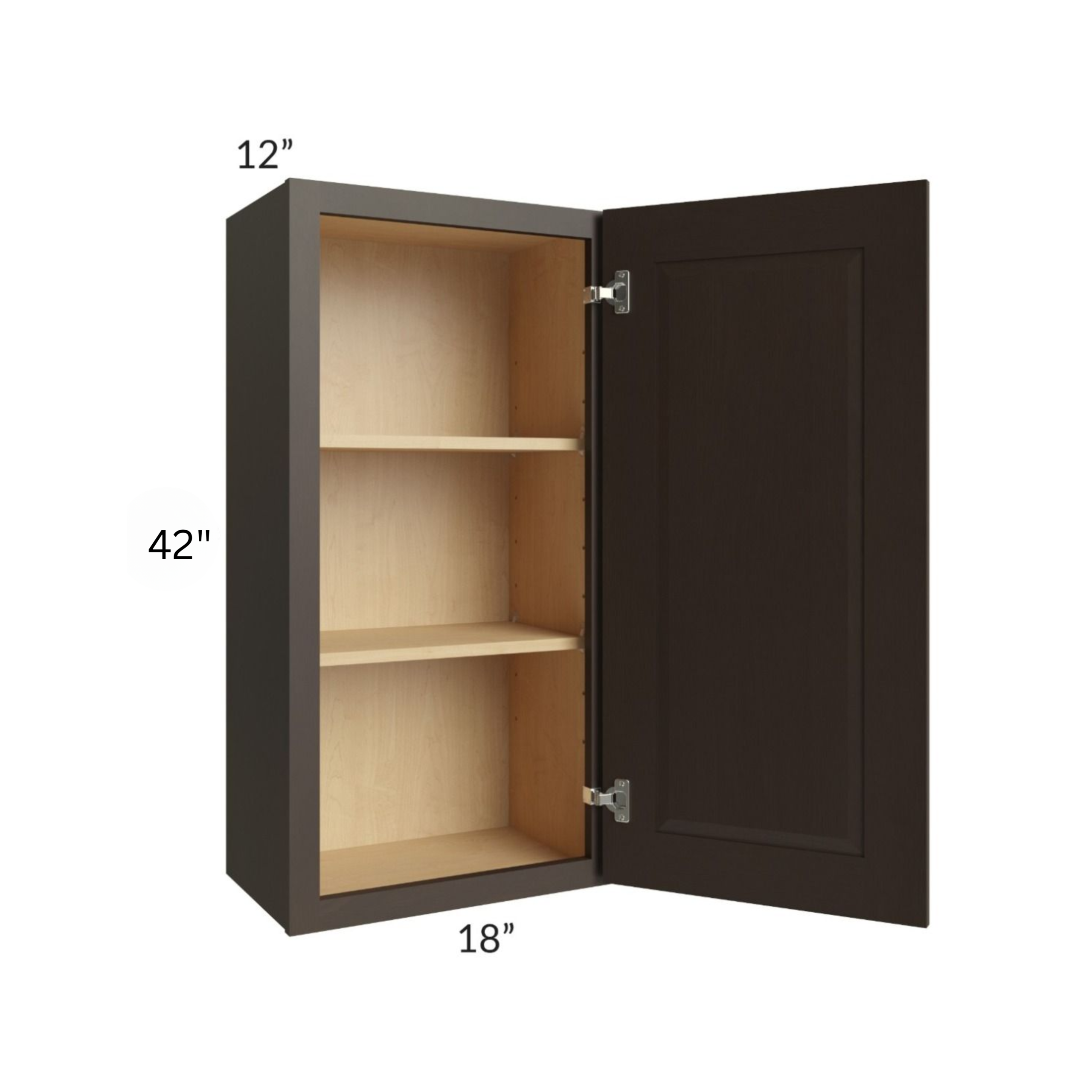 Shaker Espresso – Wall Cabinet Single Door – 18″W X 42″H X 12″D With 1 Door And 3 Shelf