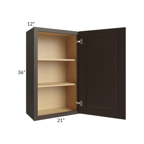 Shaker Espresso – Wall Cabinet Single Door – 21″W X 36″H X 12″D With 1 Door And 2 Shelf