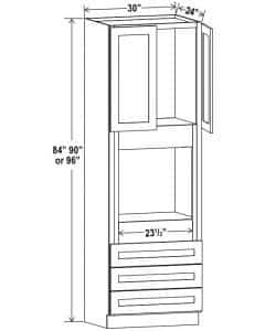 Shaker Gray 30″ W Double Door Oven Pantry Cabinet with Three Drawers