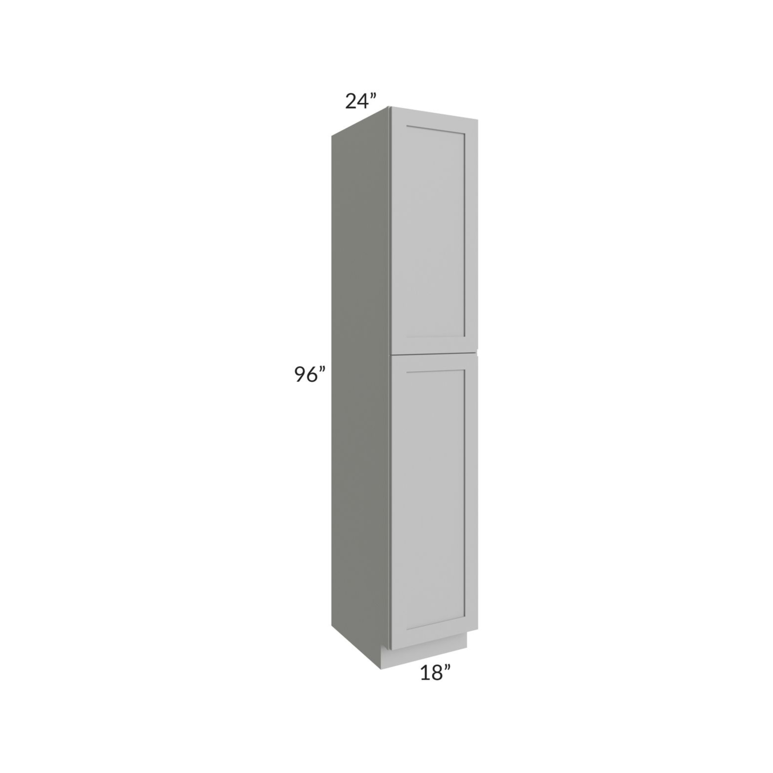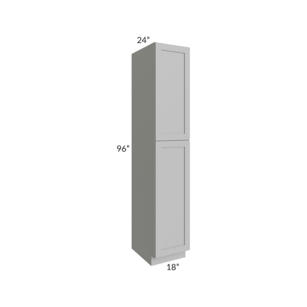 Shaker Gray – Utility Pantry – 18″W X 24″D X 96″H. Two Adjustable Top Shelves, Three Bottom Shelves. Note: Roll Out Shelf Kits Available.