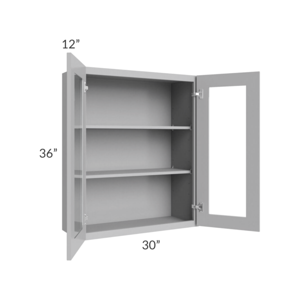 Shaker Gray – Wall cabinet Double Glass door – 30″W X 36″H X 12″D-2D-2S *Clear Glass Included