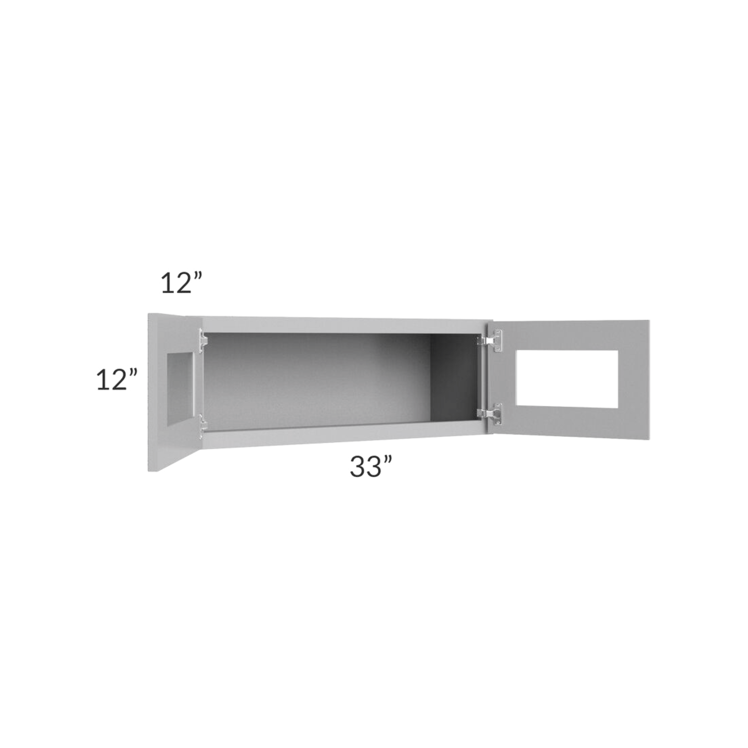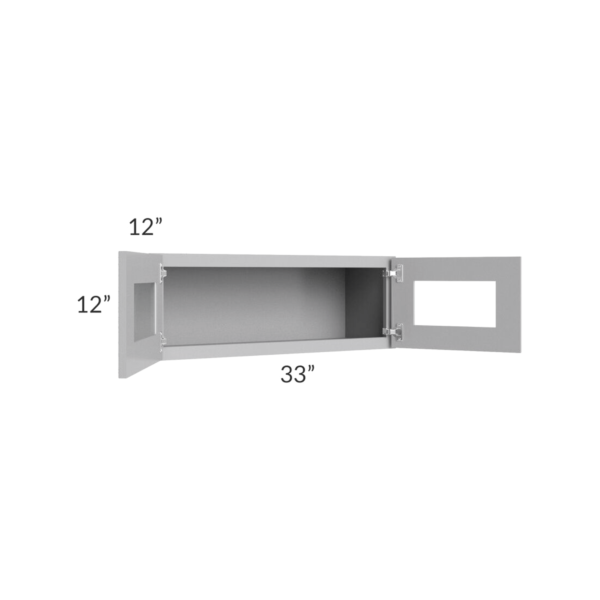 Shaker Gray – Wall cabinet Double Glass door – 33″W X 12″H X 12″D *Clear Glass Included