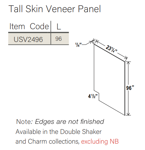 Modern Cabinets & Co Shaker Panels are made to last. The solid materials and nice navy blue finish not only look good but will hold up over time. This Tall Skin Veneer Panel will make your cabinets look stylish and modern for years to come.
