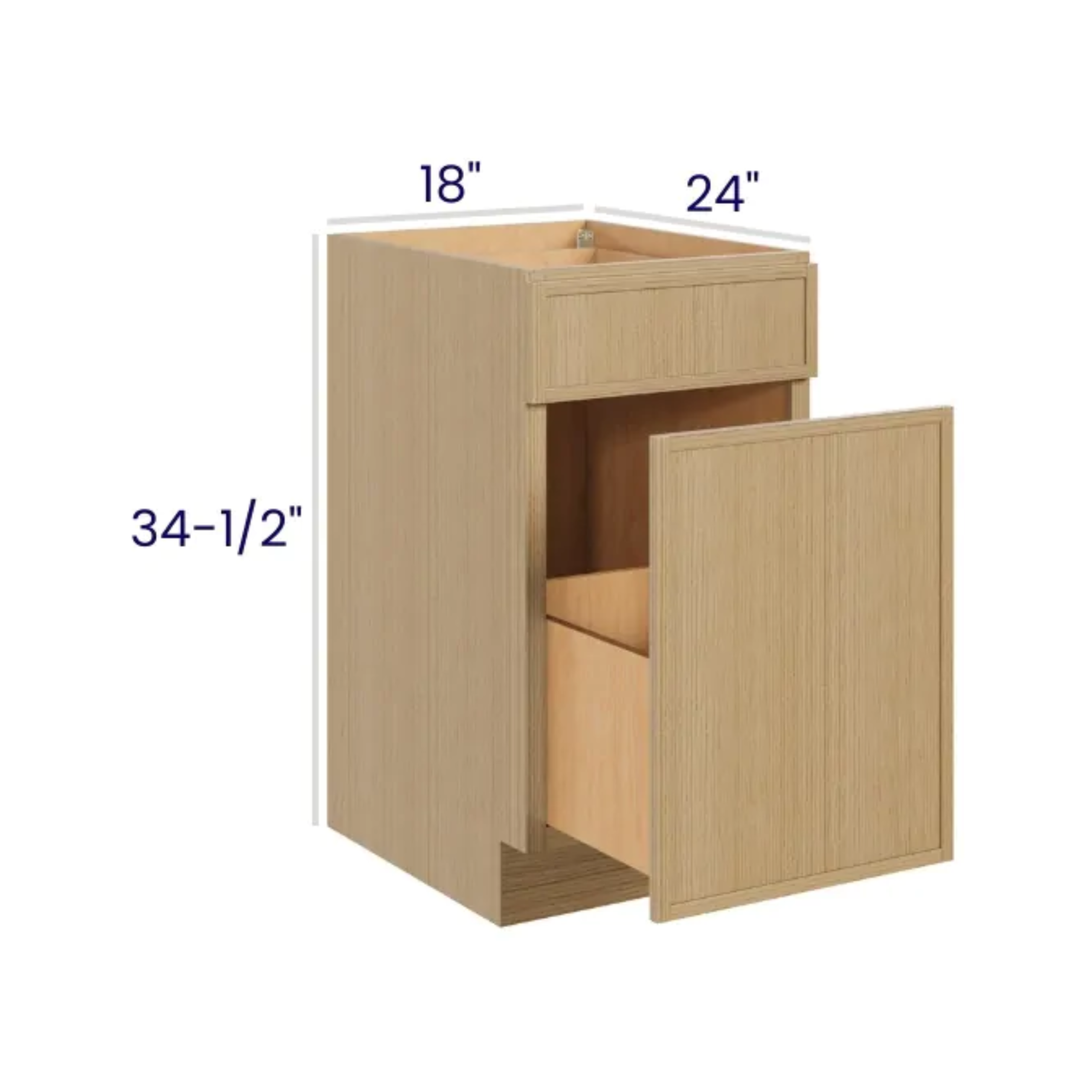Slim White Oak – Base Cabinet Single Door -18″W X 24″D X 34-1/2″H With 1 Door, Drawer And Shelf