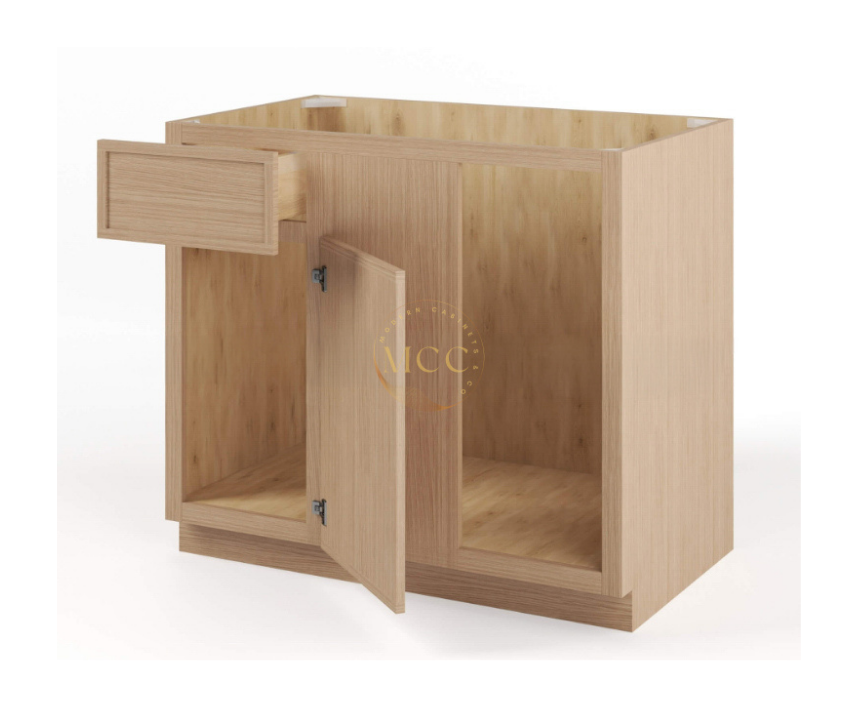 Modern Cabinets Slim Oak Shaker Cabinets Line is crafted with meticulous attention to detail, this Slim Oak Shaker Three Drawers Base boasts a top-grade “A” plywood cabinet box for exceptional durability and sturdiness. Modern Cabinets cabinets feature European soft-close hinges and glides, ensuring smooth and quiet operation every time.