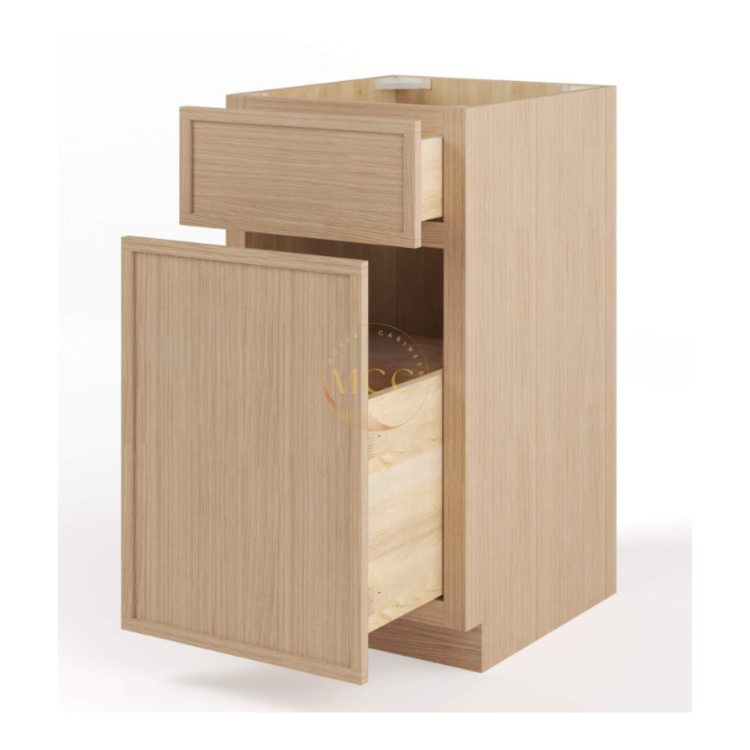 Modern Cabinets & Co Slim Shaker is built to last and will elevate any kitchen or bathroom to a modern look/feel. By shopping at Modern Cabinets & Co, you’re not just getting an ordinary cabinet; you’re investing in lasting elegance and quality. Our RTA cabinets will transform and modernize any kitchen, including those looking for a slim white oak trash cabinet feature.