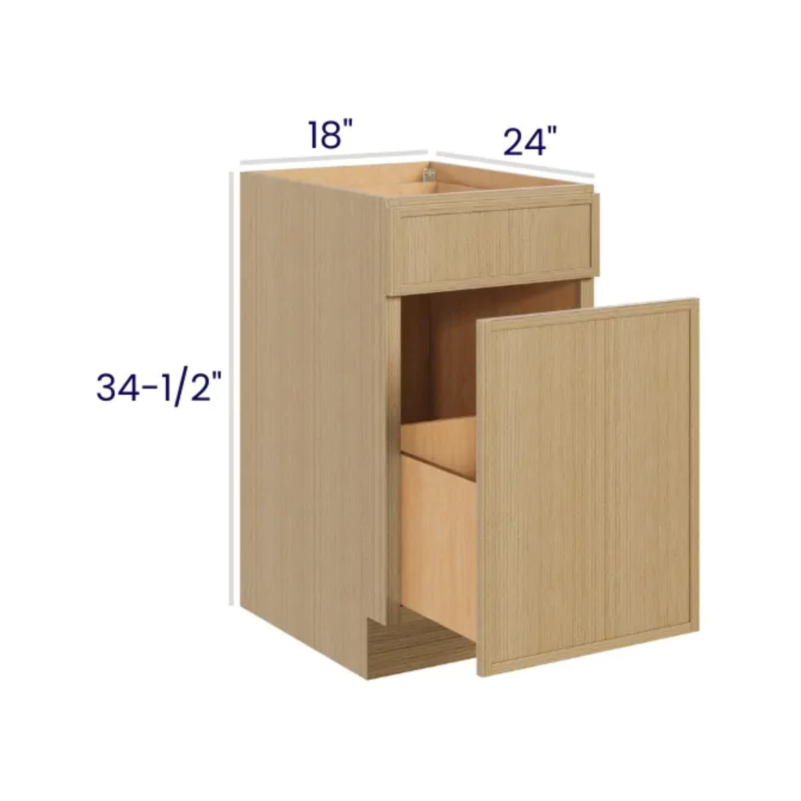 Modern Cabinets & Co Slim White Oak Line is crafted with meticulous attention to detail. This Trash Base Cabinet boasts a top-grade “A” plywood box for exceptional durability and sturdiness. Modern Cabinets & Co cabinets feature European soft-close hinges and glides, ensuring smooth and quiet operation every time. This style is ideal for modern homes.