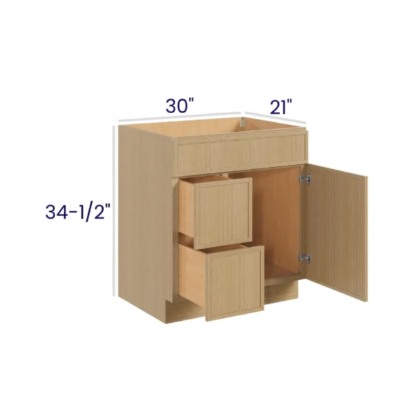 Slim White Oak – Vanity Combo – 30″Wx21″Dx34-1/2″H 2 door, 3 Drawers on Left