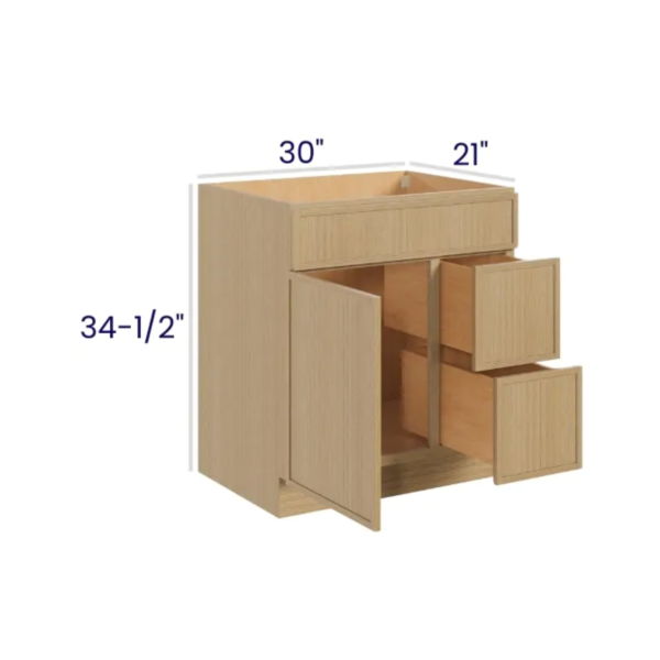 Slim White Oak – Vanity Combo – 30″Wx21″Dx34-1/2″H 2 door, 3 Drawers on Right