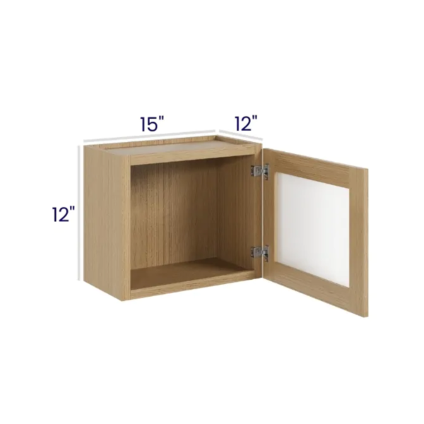 Slim White Oak – Wall cabinet Single Glass door – 15″W X 12″H X 12″D *Clear Glass Included