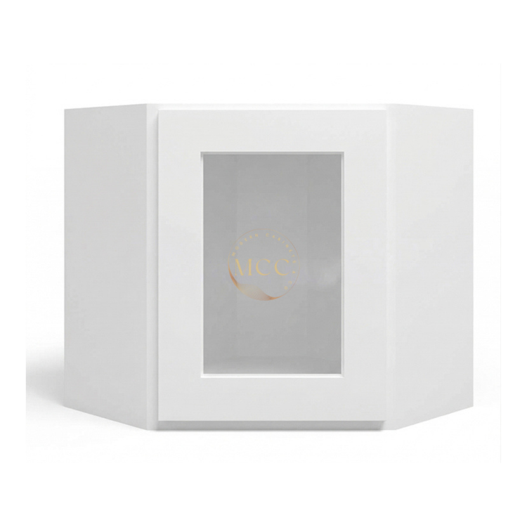 WALL WHITE SHAKERWhite Shaker 12″ x 24″ Diagonal Corner Wall Cabinet with Glass