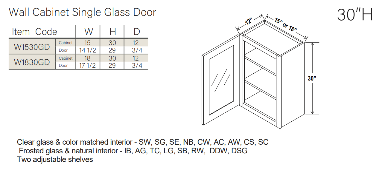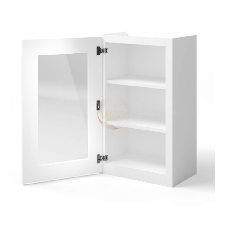 White Shaker 30″ H Single Door Wall Cabinet with Glass Door
