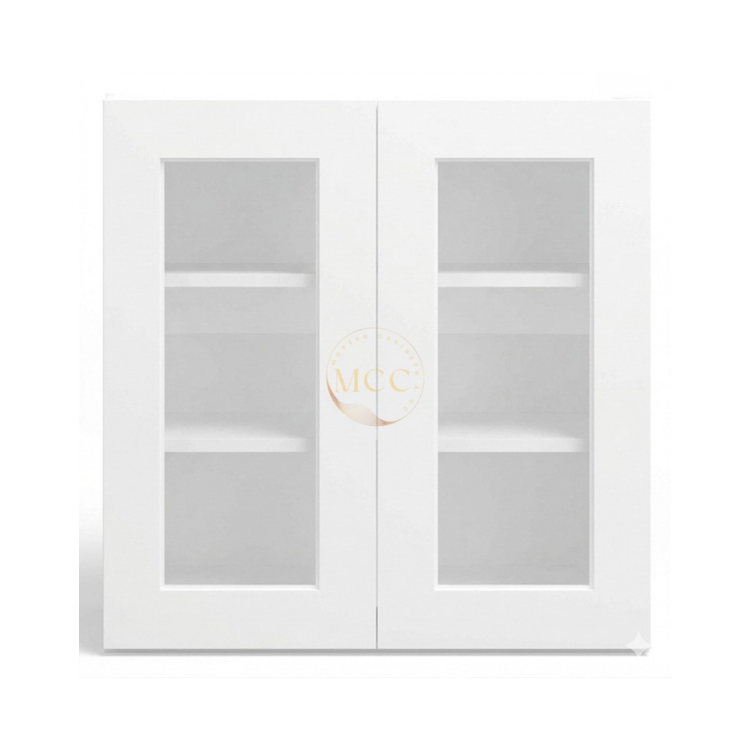 White Shaker 36″ H Double Door Wall Cabinet with Glass Doors